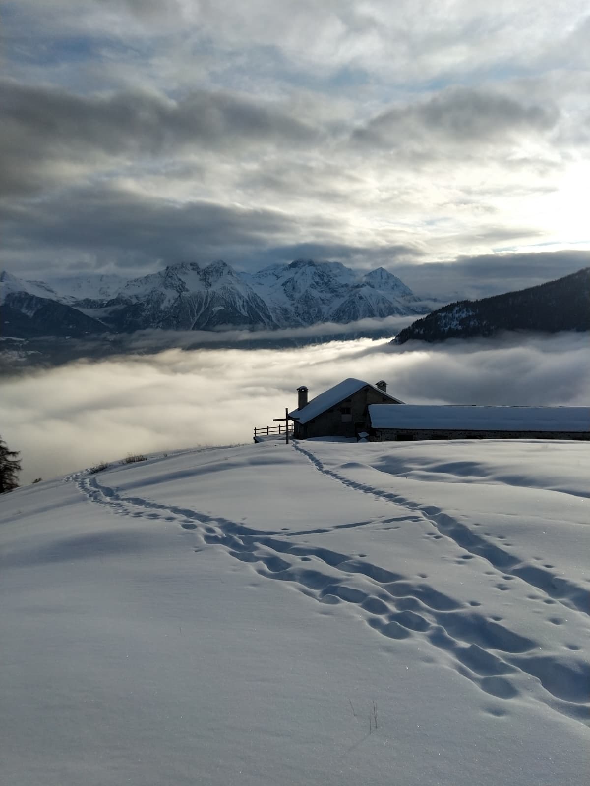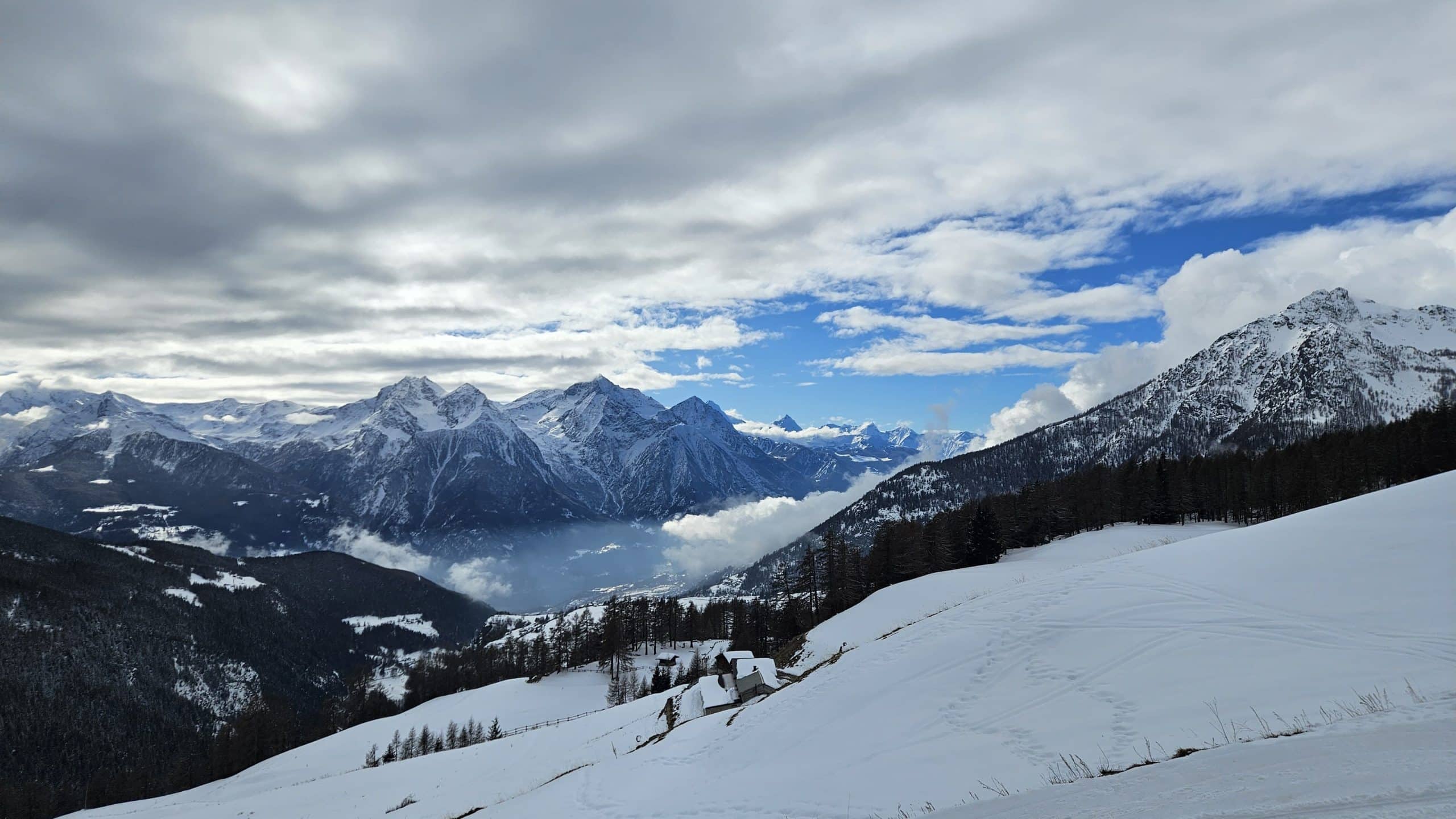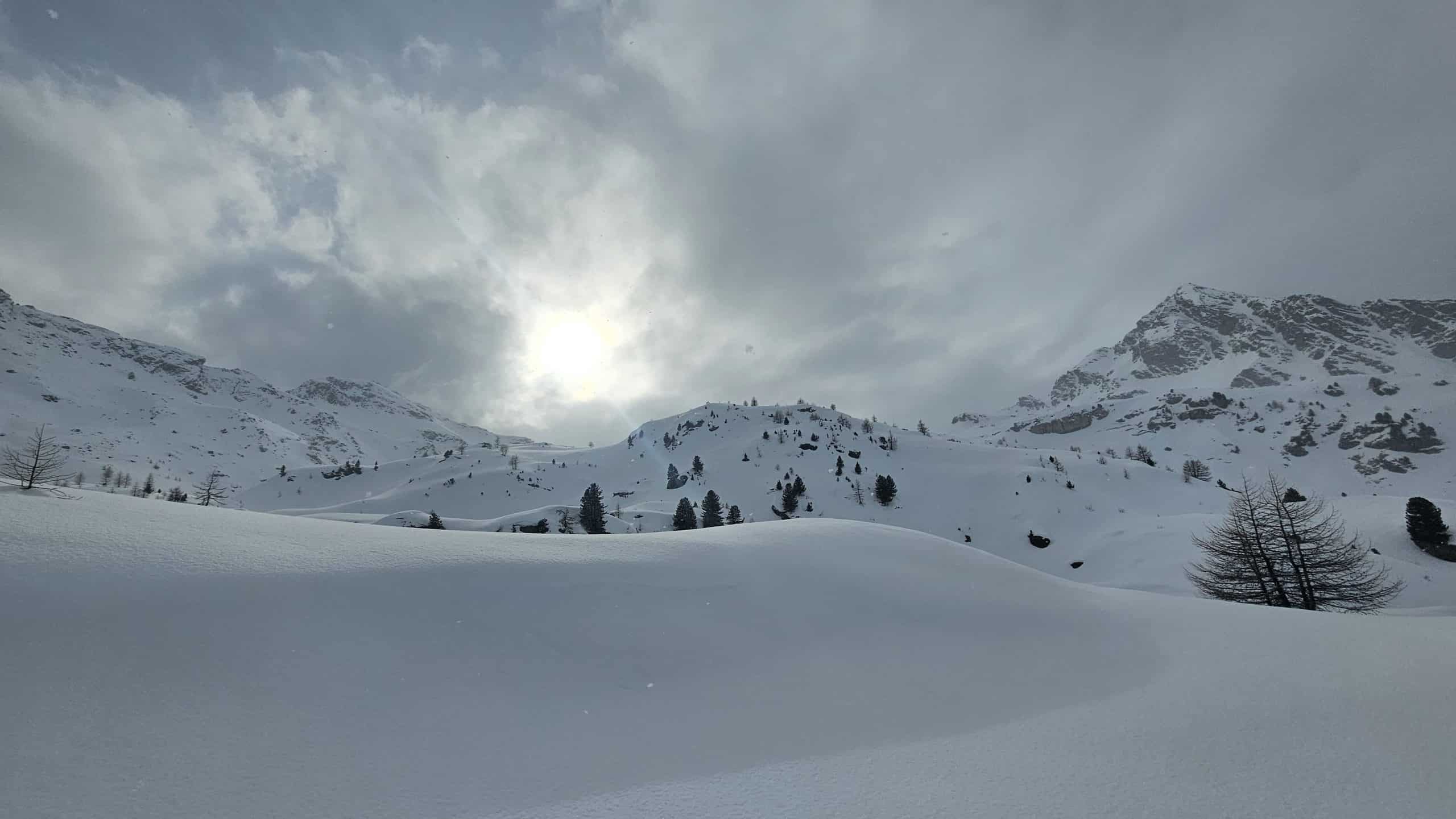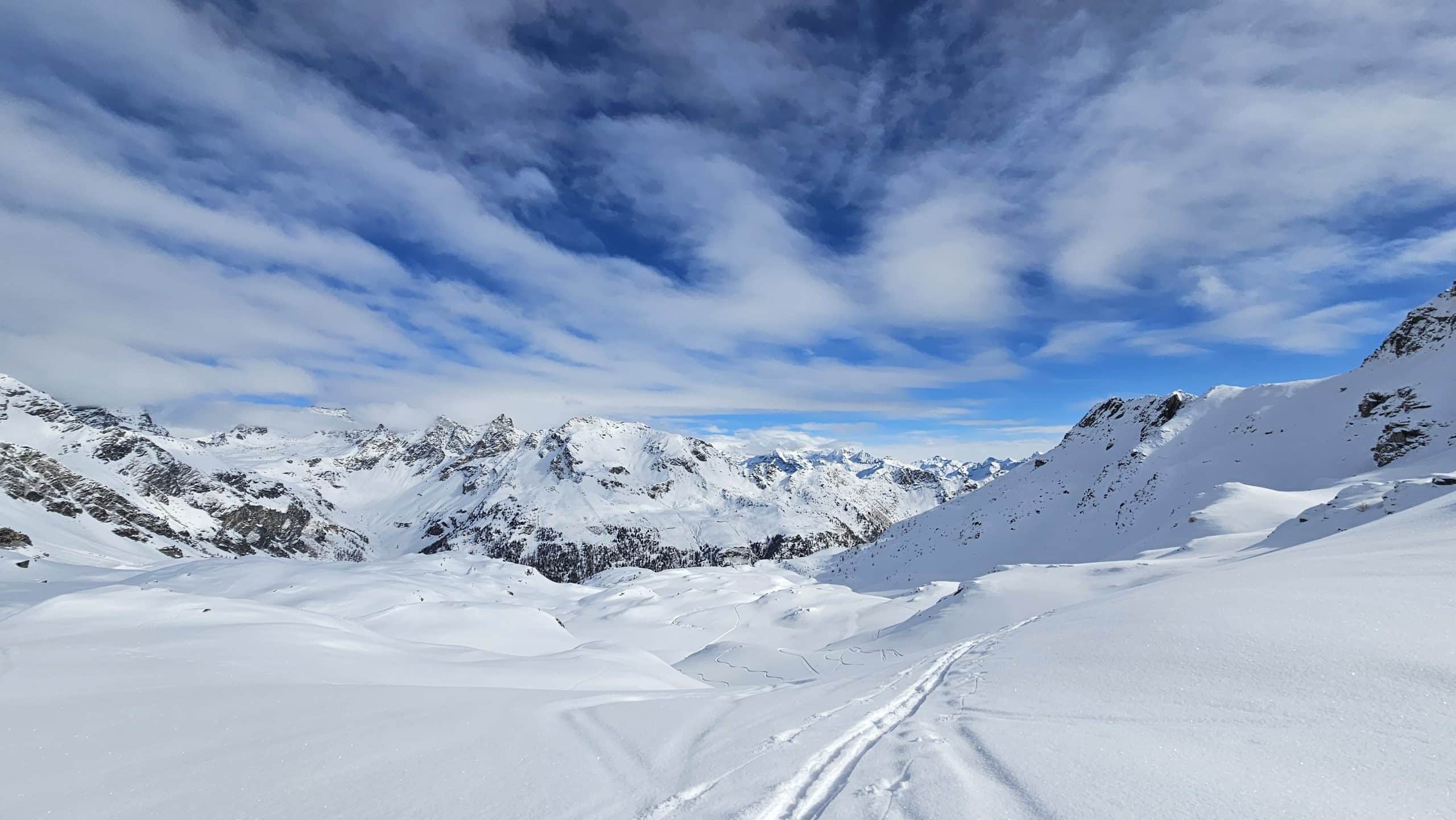 Depart from Saint-Gervais in the morning to reach Italy via the Mont Blanc Tunnel. After approximately 1 hour 30 minutes of driving, arrive in the Saint-Barthélemy Valley. With skis on, the route gradually ascends along the cross-country ski tracks before reaching the Magia Refuge, situated at 2,000 meters in a vast open alpine meadow. After a break at the refuge to drop off some gear, the day continues with a first ascent in the surrounding combes: Mont Morion or Col Tsomioy, depending on conditions. The progression takes place on consistent slopes, ideal for discovering ski touring in a panoramic setting. From the summit, the view extends over the mountains of the Aosta Valley and the high peaks of the Mont Blanc massif. Ski descent returns to the Magia Refuge, where the friendly atmosphere continues over a dinner of regional specialties.